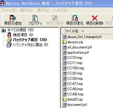 ネットサーフィンして、いろいろなサイトを訪問していると、PCが不安定で、ホームページの更新がなかなかできなくてすみませんとか、PCのHDDが吹っ飛んだとかいうふうに書かれていいるサイトをよく見かけます。また、お父さんは多くのお小遣いサイト運営者様とメールでやり取りしていますが、毎日たくさんのウイルスメールを頂いております。下の図を見て下さい。短期間に、これだけたくさんウイルスメールが送られてくるということは、お小遣いサイトの運営者の多くの方がコンピュータウイルスに関して関心がなく、ウイルス対策をしていないということがわかります。お父さんは非常に悲しいです。
