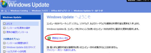 2. Windows Updateのサイトで、『更新をスキャンする』 をクリック。Windows