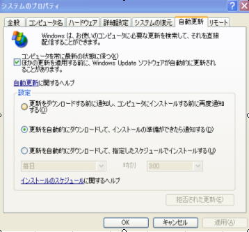 『自動更新』タブで右図の所にチェックを入れて下さい。