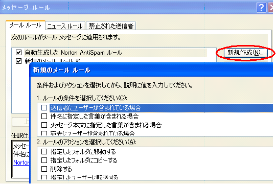 2.振り分けルールの作成する。 『ツール』 → 『メッセージルール』 → 『メール』と選択してゆきます。