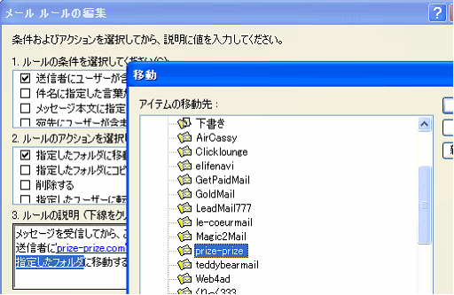 ここでは、1円メールで有名な『prize-prize』のフォルダを作成してみます。