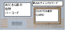 仮の『ログインパスワード』が書かれた台紙にカスタマーカードが貼り付けられています。このカードをはがして大事に保管しておきましょう! |